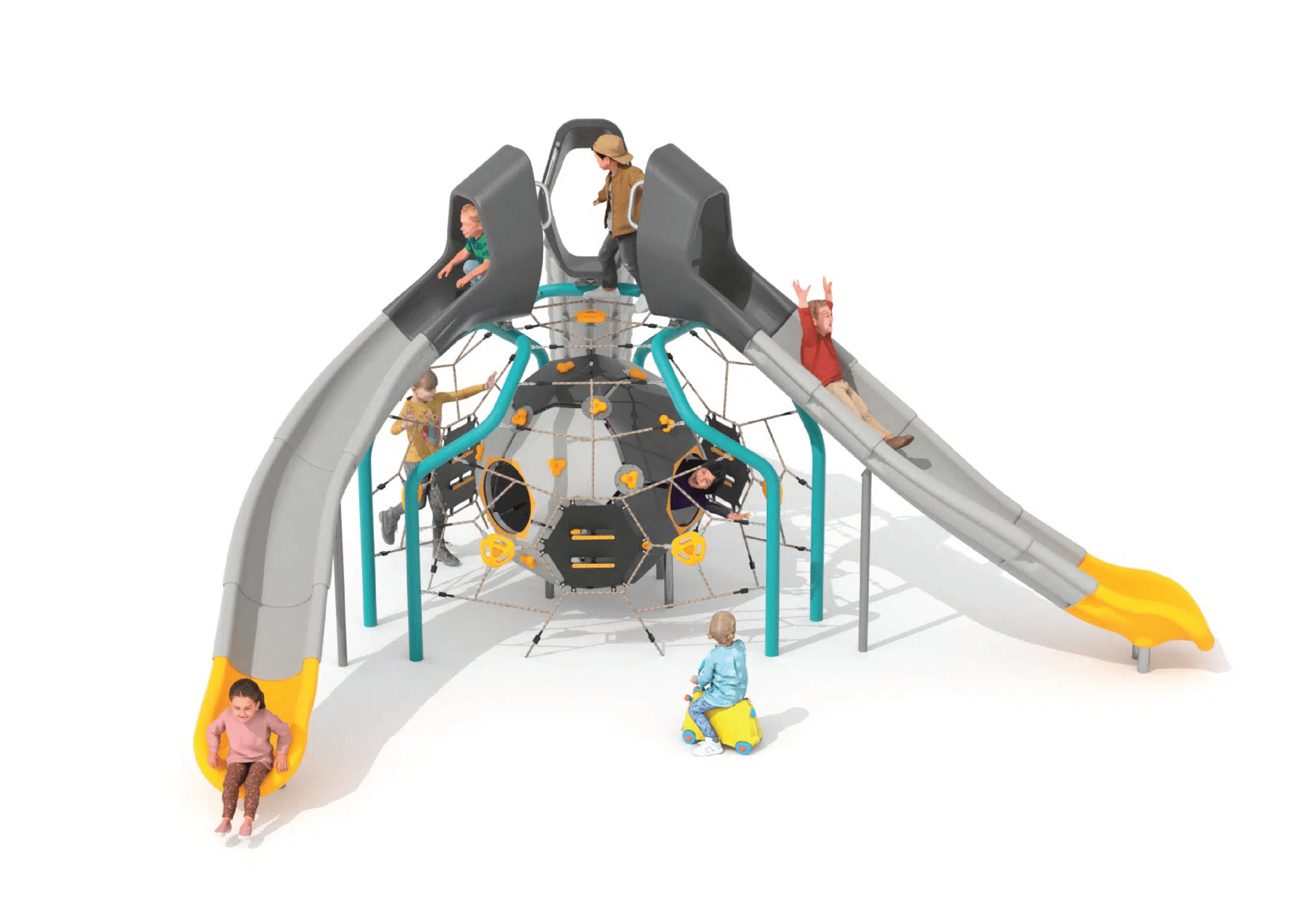 Taking play to a molecular level – the Atomic Bubbles resemble connected atoms, forming seamless, flowing structures that guide children from one activity to the next, maintaining a rhythm of play and exploration. The range encourages climbing, balancing and swinging, supporting coordination and confidence, and creating an engaging environment that invites scientific curiosity.