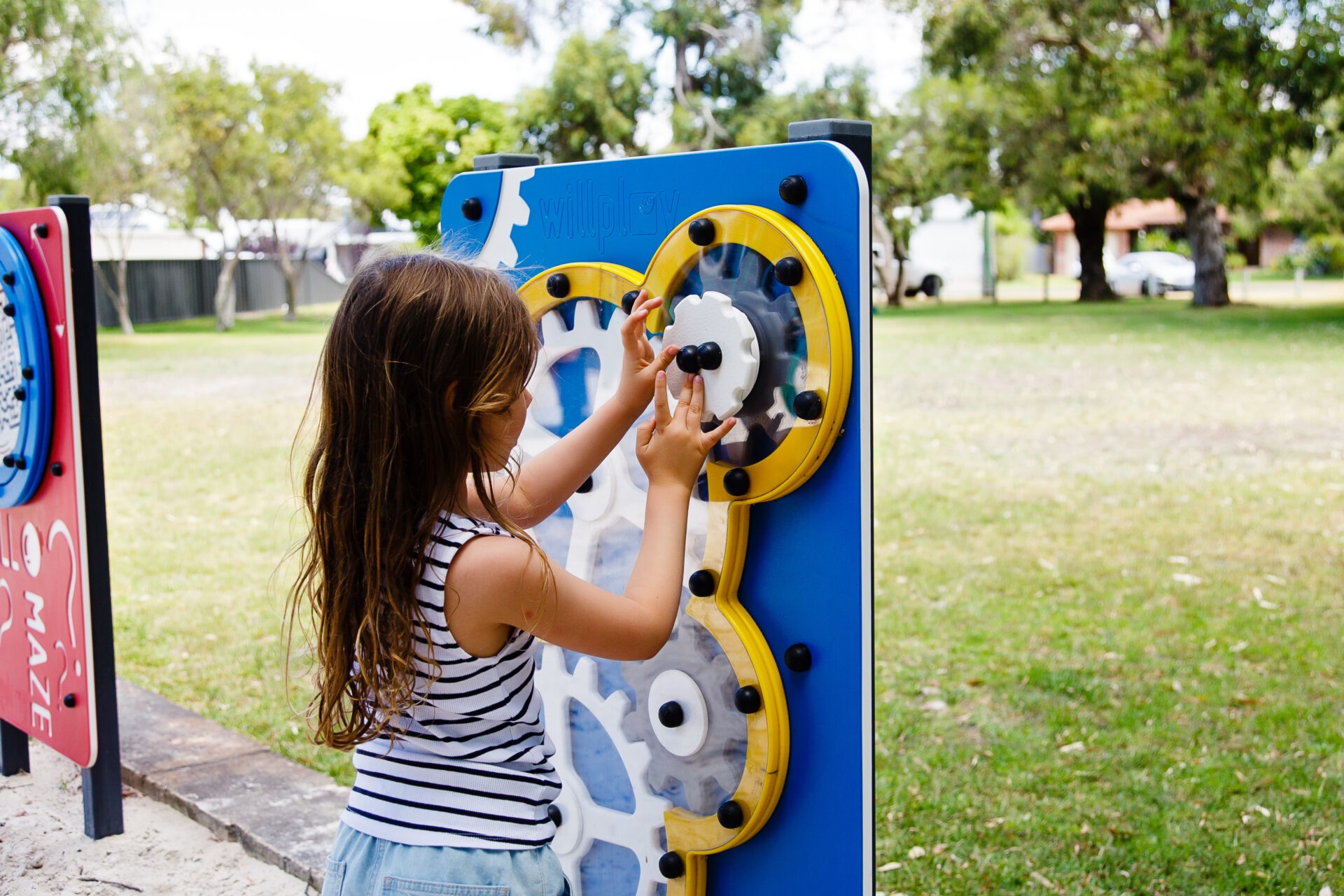 Nestled in a green haven amongst the suburb of Broadwater is Kingfish & Costello Park. Active Discovery worked with the City of Busselton to provide some complimentary play options to the existing equipment at this picturesque space. Inclusive and sensory game panels were installed along the edge of the park to encourage problem solving and social interactions whilst the sand digger provides a nature play element to the space whilst also promoting upper body development and coordination.