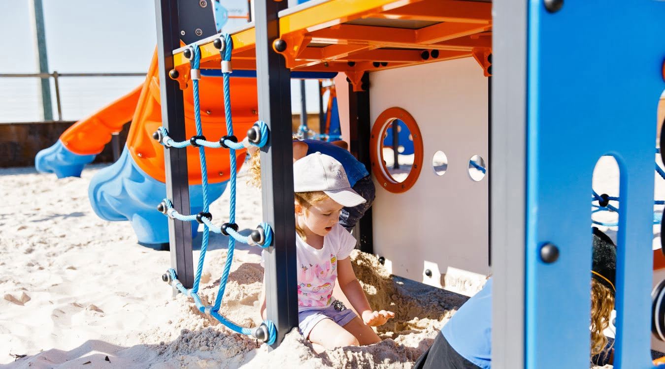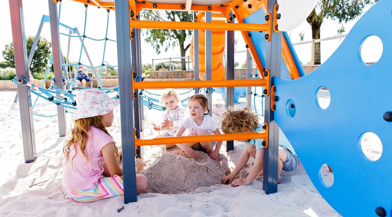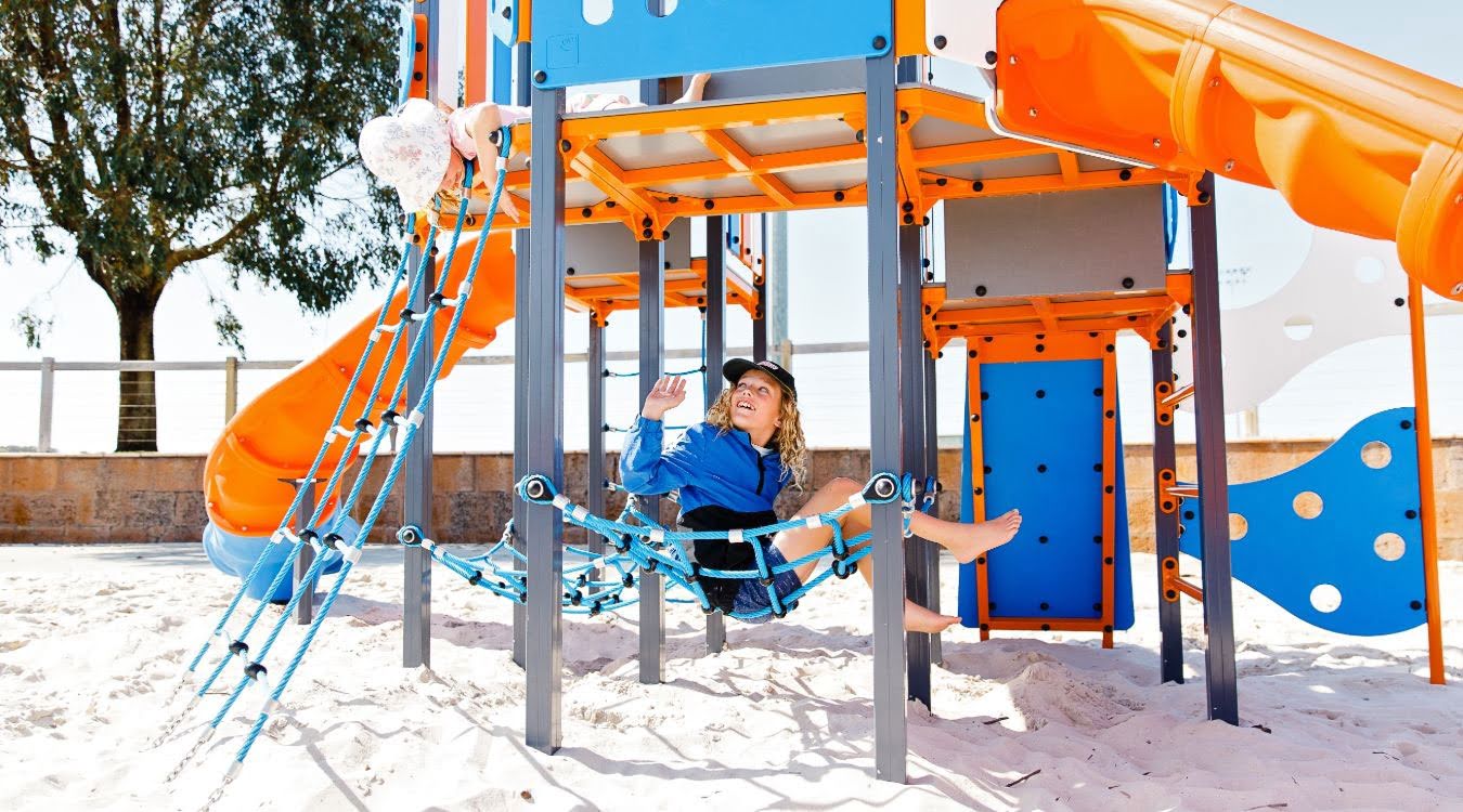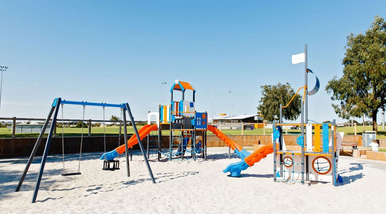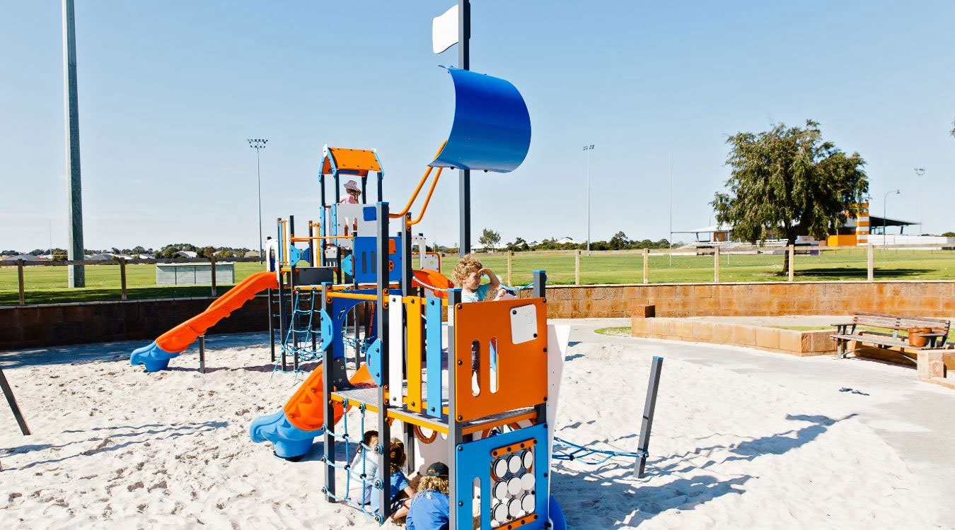 Larkhill Park was a design and construct project that formed part of the City of Rockingham’s 2018/19 Playground Asset Renewal Program. The brief for this project was to include multi combination units and a swing set. We opted to design a nautical theme inspired play space, with the park located in coastal location within a state-of-the-art sporting complex. Captains of all ages can set sail across a sea of imagination between the two play units. The main structure has upper and lower decks with rope nets situated under the decks of the play equipment to simulate sleeping hammocks which will encourage hours of social play. Little sailor mates can make their way onboard the Junior FTA-027 sailor’s boat via a climbing net and stairs, where they can engage in social play, role play and dramatic play. The unit also has integrated port holes allowing sailing adventurers to gaze out to sea while their deck mates steer the little boat to dry land. Other elements of the playground include a double bay swing equipped with a toddler and junior swing seat.