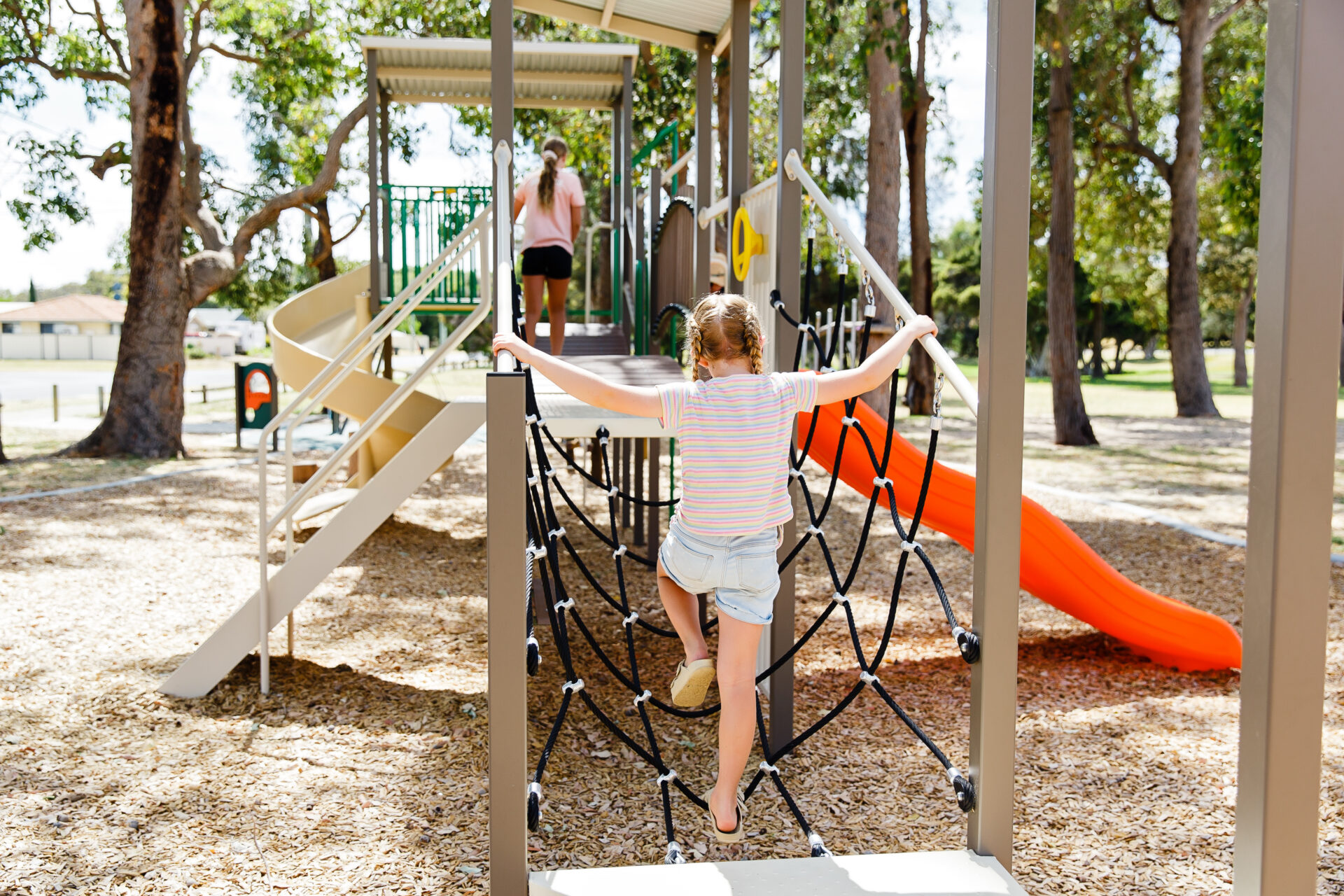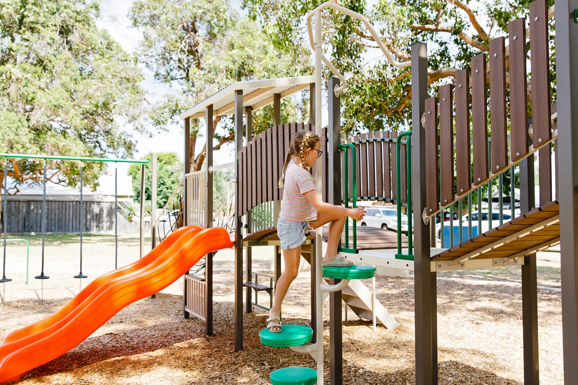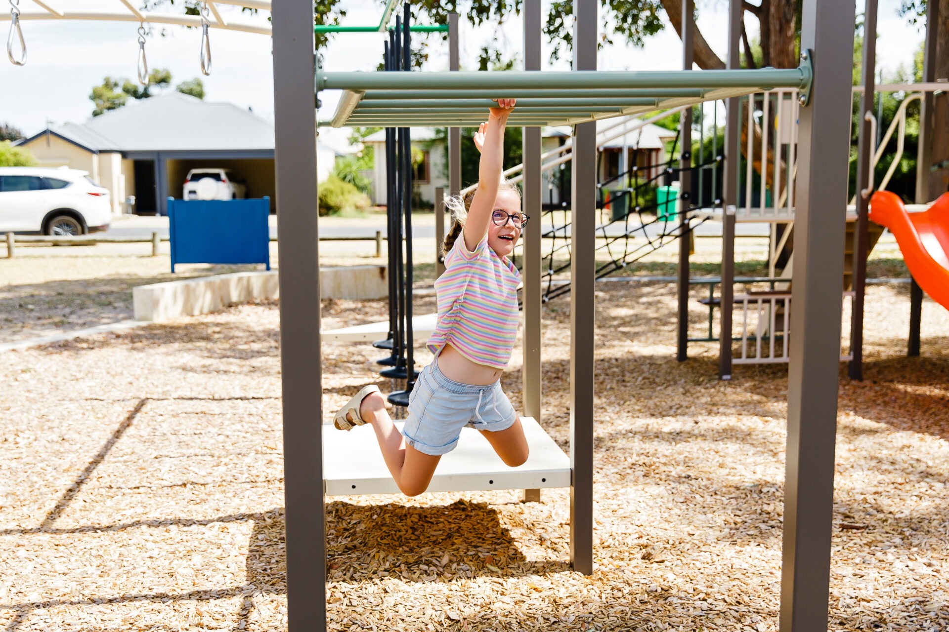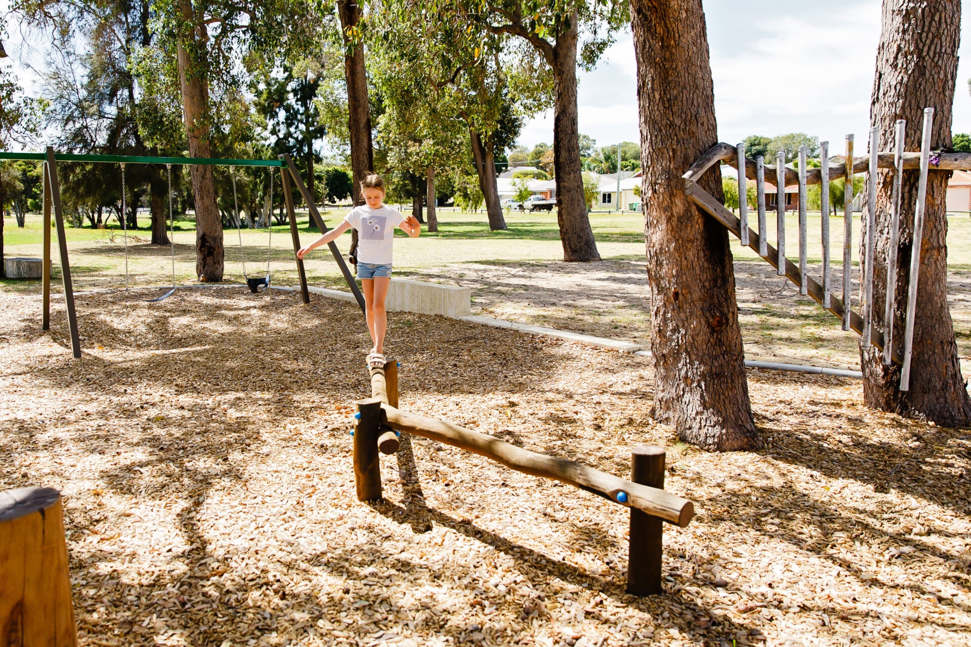 - Nature Trail (Jarrah balance log & steppers) – A nod to the natural surroundings, encouraging coordination and balance in a playful, outdoor setting