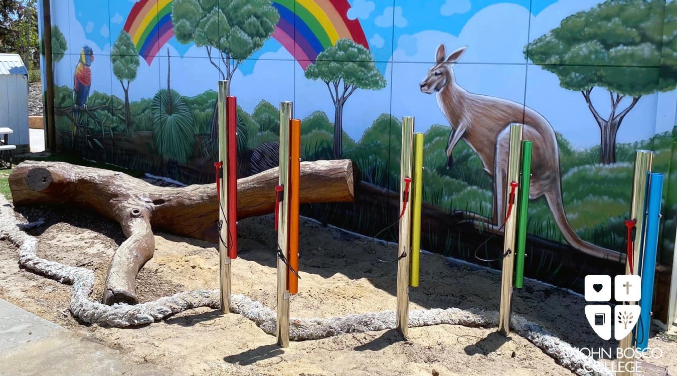 What’s better than music and nature? This beautiful sensory space at St John Bosco College is a place full of peace and colour where the students can find their sound on the beautiful Percussion Play musical equipment positioned in amongst the playground.