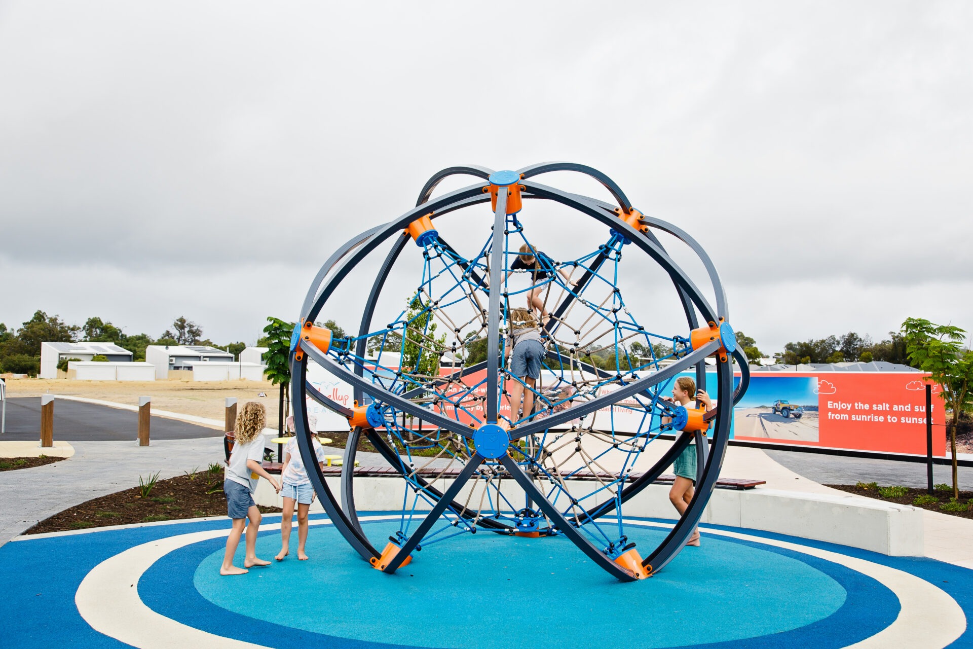 Another successful play space equipment project completed, featuring our Willplay Sphere Orb. The local residents and tourists to the town now have a great new play piece to explore and burn off some energy whilst mum and dad enjoy a coffee or a cold beverage of choice at the nearby restaurants and pubs. If you haven’t visited Dalyellup yet we would highly suggest you visit this coastal spot for it’s beautiful natural landscapes that surround it on one side, with coastal views and beaches to greet you on the other.